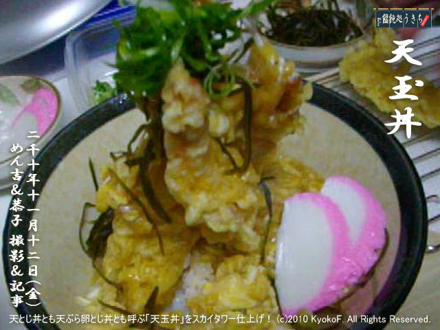 そして「天玉丼スカイタワー」というタイトルで、恭子ちゃんにYouTubeにアップしてもろたんで見たってや!ほんでついでに恭子ちゃんの「B級グルメ」コーナーでも「美味しさボリューム満点天玉丼スカイタワー」ファイルにしてアップしてまんので見たってや!